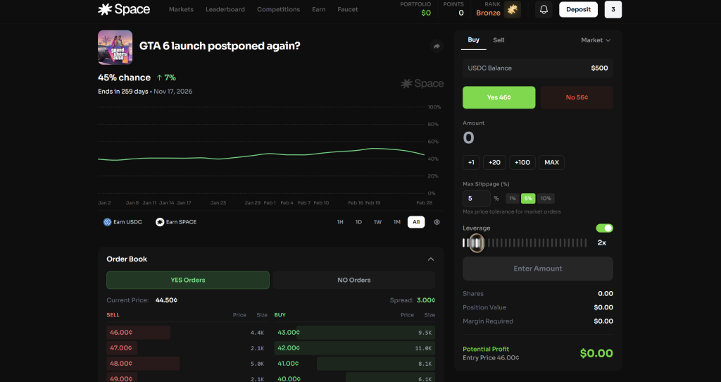 At its core, Space is a decentralized platform that lets users trade on real-world outcomes across diverse categories: crypto (like Bitcoin hitting $150K), politics (elections and bills), sports (Super Bowl winners), tech (AI breakthroughs), economy (inflation rates), culture (entertainment trends), and even wildcards like community mysteries. Users buy “YES” or “NO” shares on events, using market or limit orders, and can amp up their exposure with up to 10x leverage for explosive returns. But Space goes beyond basic betting. It’s designed for traders who crave depth: